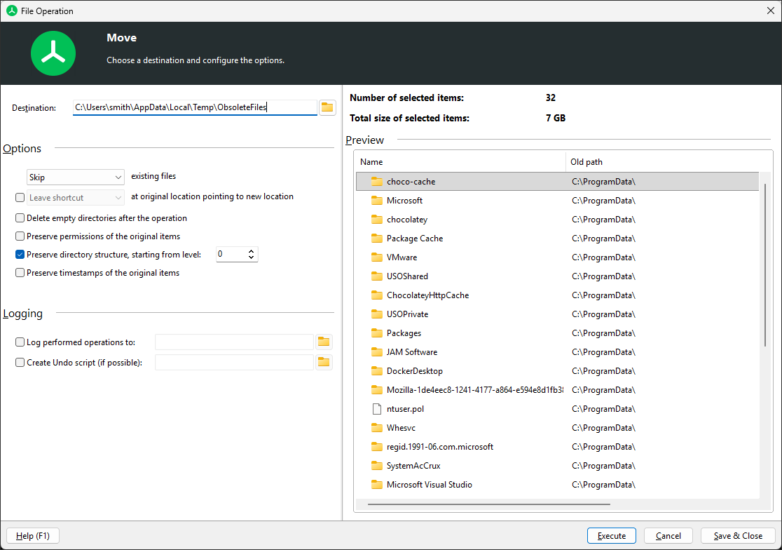 It is highly recommended to use the option “Log performed operations to”, in order to create a log file that documents what files were affected.